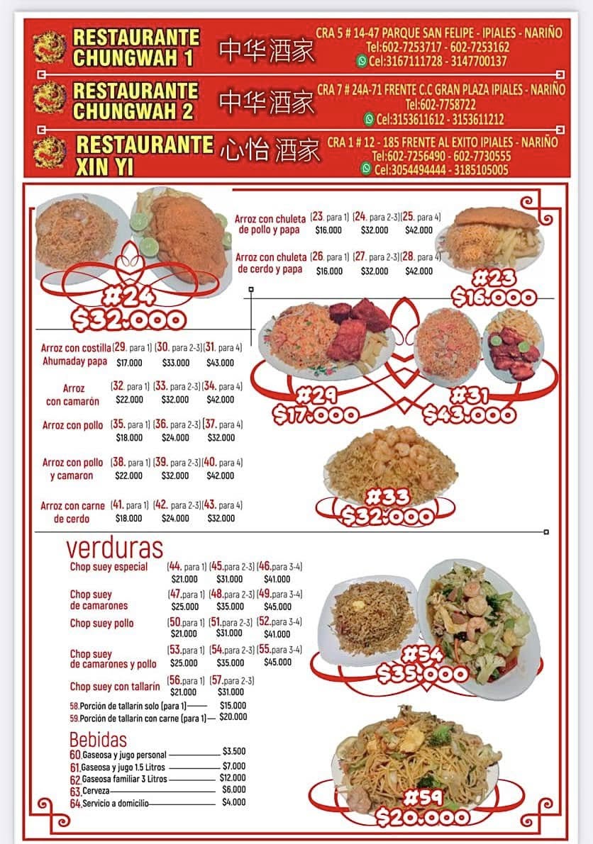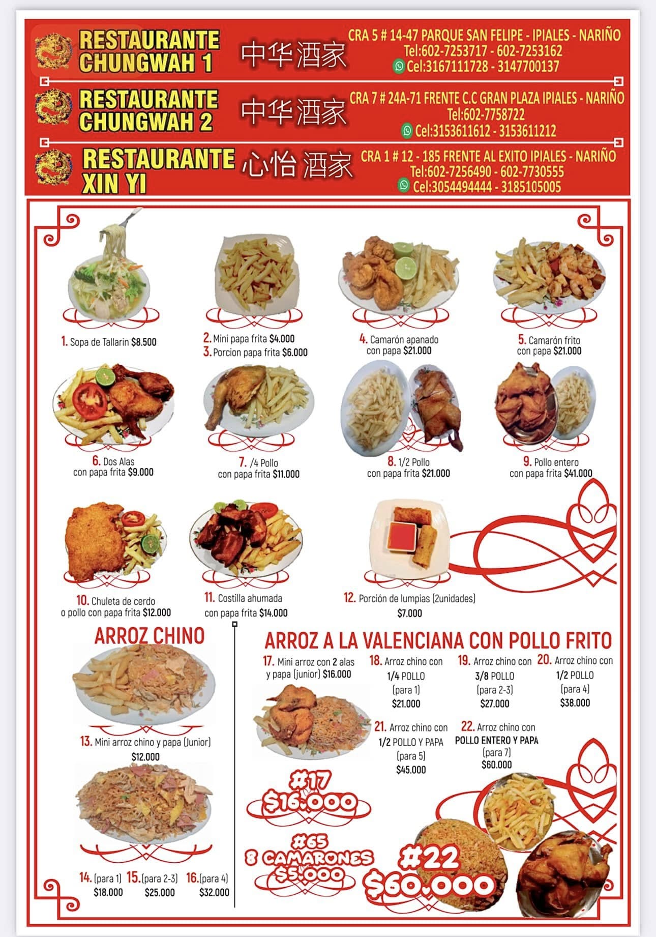 Auténtica comida china. Servimos la mejor calidad y cantidad de comida china la ciudad. Con más de 10 años de experiencia en la culinaria China – Cra. 1a Nte. #12-185, Ipiales, Nariño – 305 4494444